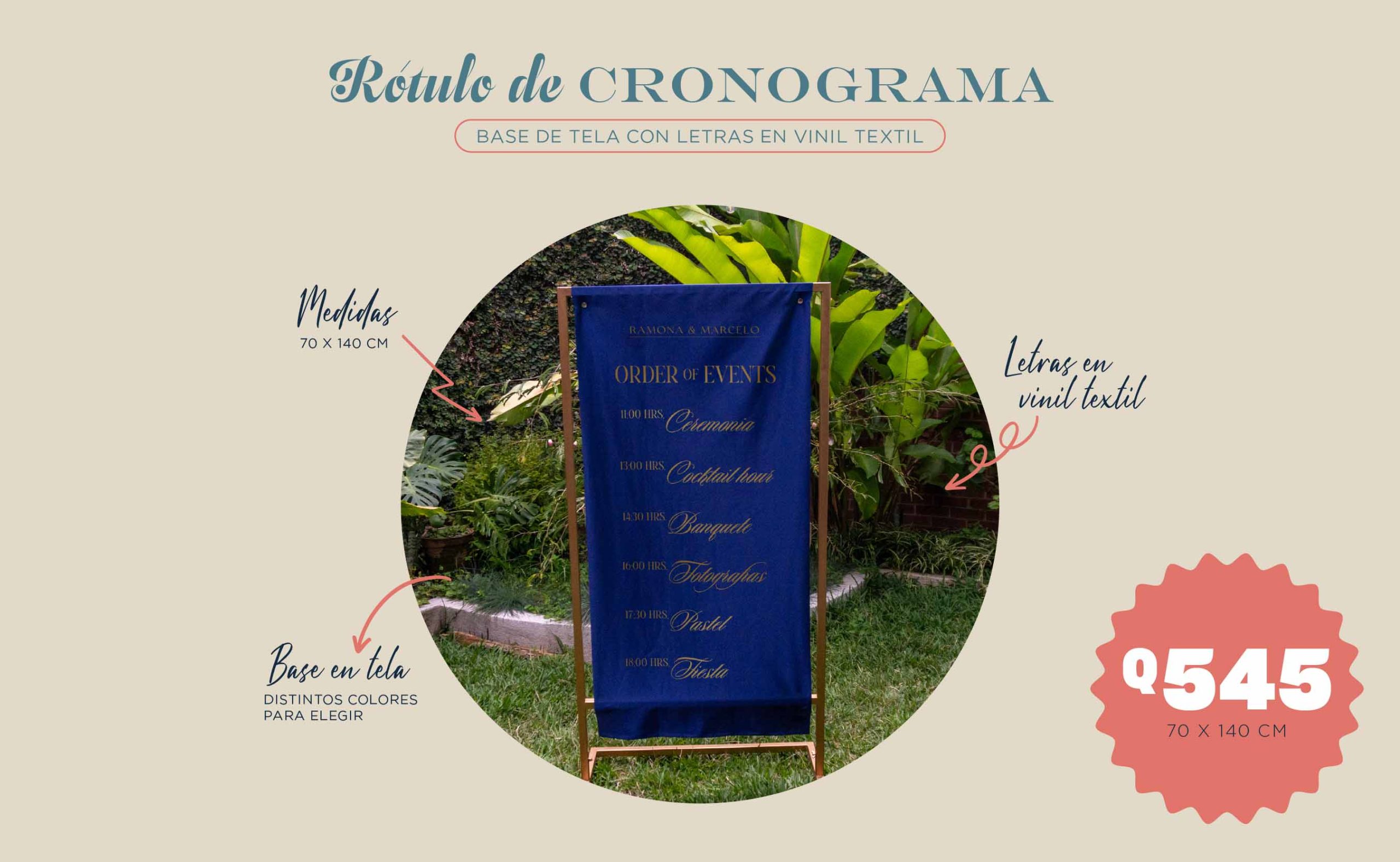 – Tamaño y forma del rótulo según tu espacio.